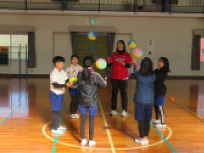 12月12日(木)。「夢の教室」に、女子ソフトボールで金メダルをとったオリンピアンが、夢先生として5年生に会いに来てくださいました。3時間目は、体育館で一緒に運動したり、実際の投球を見せていただいたりして、楽しい時間を過ごしました。