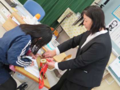 4時間目は教室で、オリンピック選手になるまでのお話を聞かせていただき、いろいろなメッセージをもらいました。最後には記念撮影をしたり、金メダルを見せていただいたりと、貴重な時間になりました。子どもたちは、「また来てください」といつまでも手を振っていました。とても素敵な夢先生に出会えて、感激した一日でした。
