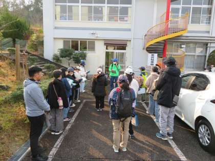 滝脇小学校のお友達と一緒に探鳥会&交流会をしました 公開日 2025/01/16 更新日 2025/01/16 学校行事 1月15日(水)豊松小学校の高学年と滝脇小学校の高学年が一緒に学習を行いました。初めに探鳥会を行い、その後、体育館で愛鳥学習の交流会を行いました。交流会では、滝脇小学校の愛鳥学習についてスライドを使って教えていただきました。本校は再来週に控えているジャンボかるた会のやり方の説明と実演をしました。互いの学習について知るいい機会となりました。