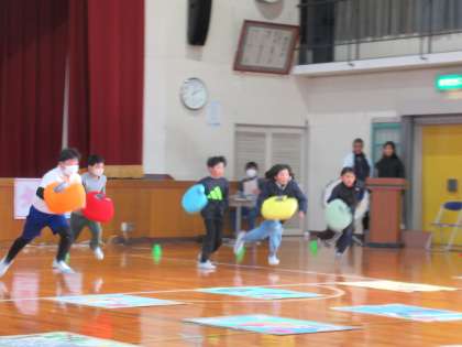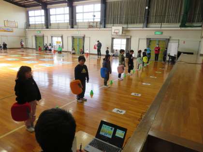2月6日(木)5時間目。子どもたちが楽しみにしていた愛鳥ジャンボカルタ会を体育館で行いました。これまで培ってきた鳥の知識を存分に発揮し、なかよし班に分かれてがんばる子どもたち!