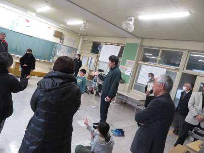 また今回は、子どもたちの休み時間の様子を見ていただきました。この日は、縦割り班(本校では「なかよし班」と呼んでいます)での遊びの時間でした。「異学年でのこうした交流は、温かい気持ちになってよいですね」「ぜひ、これからも続けてほしい」など、ご感想やご意見をいただきました。