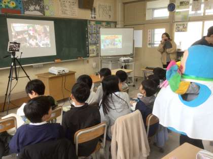 2月17日(月)の3時間目。3・4年生が、同じ名前の広島県神石高原町立豊松小学校と、オンラインで交流しました。