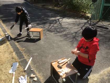 3・4年生の図工の授業をのぞいてみると…。3年生は初めてのくぎ打ちに挑戦し、4年生は昨年のくぎ打ちの経験を生かして、自分のイメージした作品づくりに取り組んでいました。