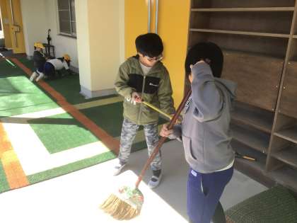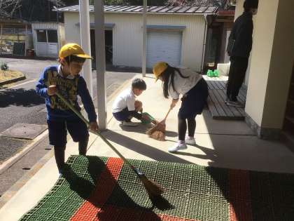 本校では、1年生から5年生までが、卒業式の準備に参加します。どの学年も、6年生のためにと、張り切っています。1,2年生は主に清掃、3年生は体育館トイレと清掃、4・5年生は体育館の会場準備です。