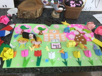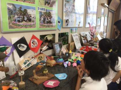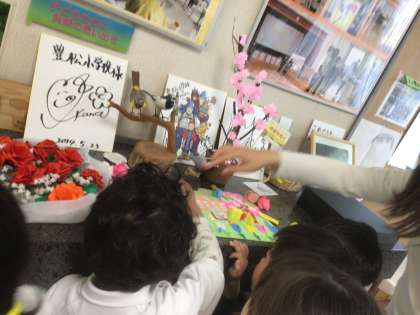 名刺交換の後は、校長室を一巡り。「あ、昔の校長先生の写真だ」「この折り紙、かわいい」などなど、気付いたことをつぶやくかわいい1年生の姿が見られました。