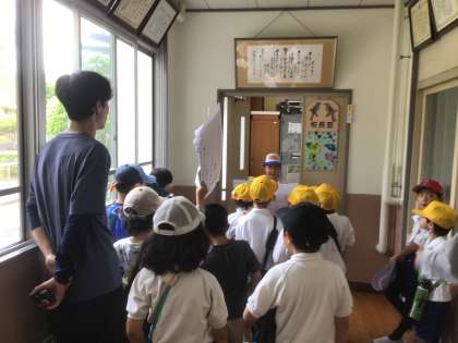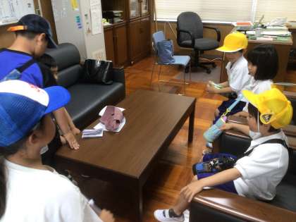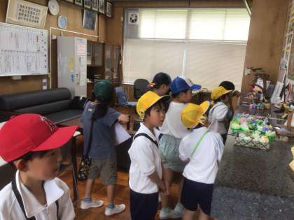 2年生が1年生に学校を案内しながら、学校探検をしました。校長室の前でも、2年生が上手に「校長室クイズ」を1年生にしてくれました。初めての校長室。1年生も2年生も楽しそうに過ごしていました。