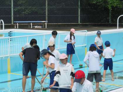 5/30に3〜6年生でプール清掃をしました。みんなで力を合わせて、プールの中はじめ、テラスや更衣室、下駄箱まできれいにしてくれました。来週のプール開きが楽しみです。
