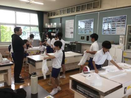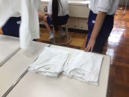 家庭科の学習で、アイロンをかけて、シャツのしわをのばしました。