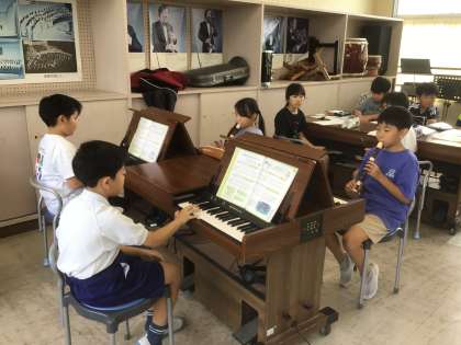 リコーダーやオルガンで、2グループに分かれて、学習の成果を発表し合いました。どちらのグループも、とても上手でした。