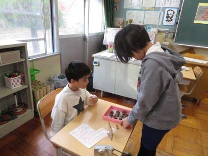 1年生にとって初めてのお客さんとなった3・4年生ですが、1年生のお話をよく聞いて、ルールを守って楽しく遊びました。遊んだ後は3・4年生からよかったところや感想を伝えられ、1年生のやる気がさらにアップしました。明日と金曜日も楽しみです。