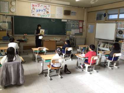 国語の授業で、学校図書館司書さんにブックトークをしていただき、昔話の絵本をたくさん紹介してもらいました。2年生の子どもたちは、興味津々でした。