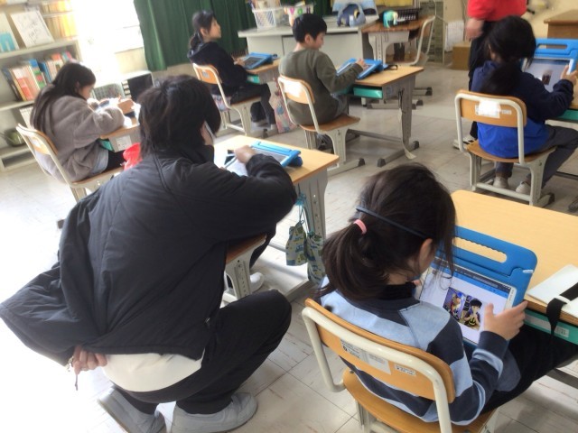 学習用タブレットを使って、生活科の学習で取り組み始めた「わたし ひろがれ」の発表ノートを作成しました。写真の取り込み方をICT支援員さんが、優しく教えてくださいました。子どもたちは、やる気満々です!