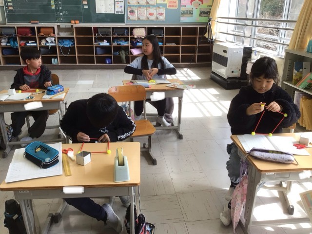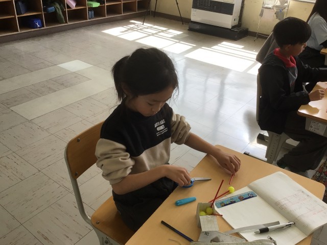 体験活動を通して、頂点や辺の数を調べました。教具を使って、どの子もとても楽しく、学習に取り組んでいました。