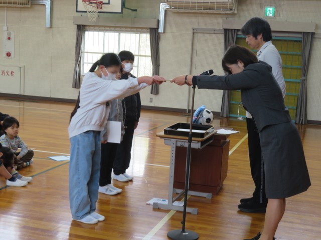 今朝の朝会で、校長先生から学級代表、各委員会の委員長として認証されました。学校のリーダーとして、頑張ってくれることでしょう!