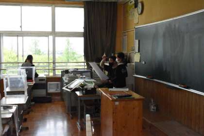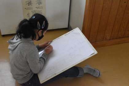 遠近の構図を生かして校内を写生していました。