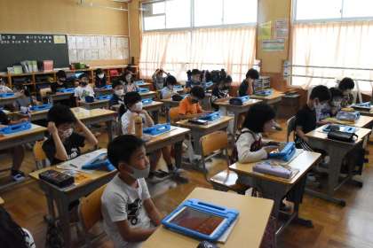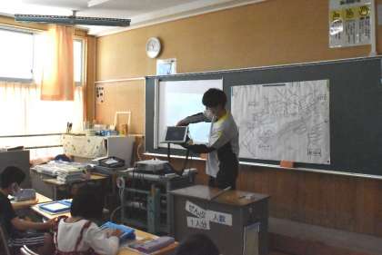 土橋小学校周辺の様子は、地図ではどう表されているかな?
