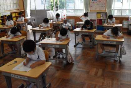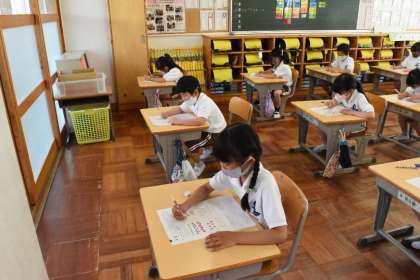 先生が問題を読んでくれて、子どもたちが一生懸命問題に取り組んでいました。