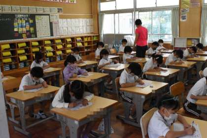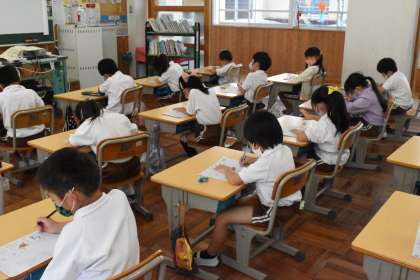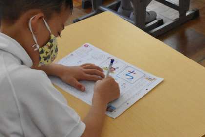 1年生 国語 今日は「ち」の学習です。 よい姿勢で、書けていますね。