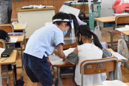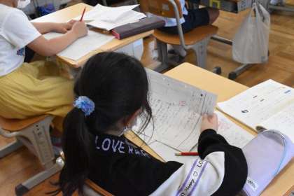 友達の書いた文章を読んで、よいところを教えてあげる活動です。