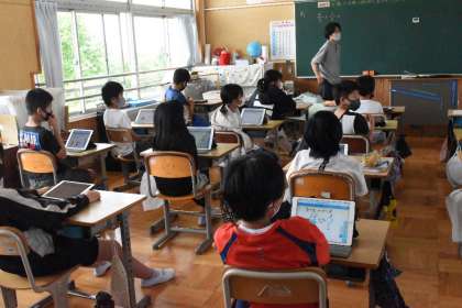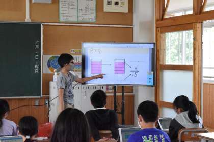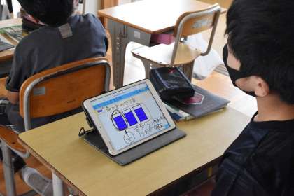 iPadを活用して、考え方を話し合っていました。