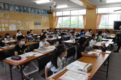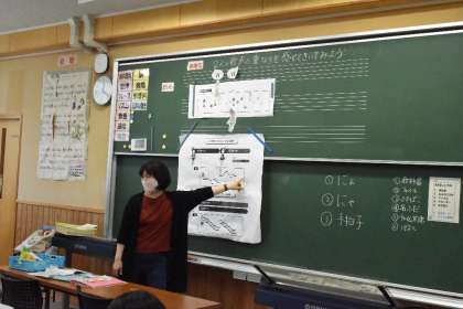 リコーダーの演奏、歌が歌えない状況ですが、工夫して音楽の授業を進めています。