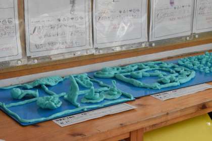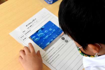 粘土で作品をつくり、その後、振り返りを書いていました。