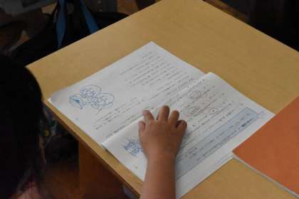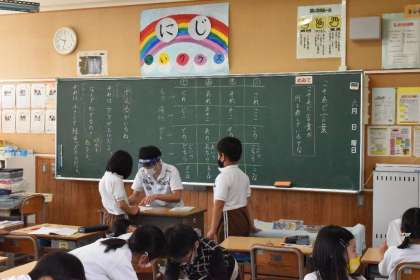 ことばのきまりに取り組んで、先生に見てもらっていました。