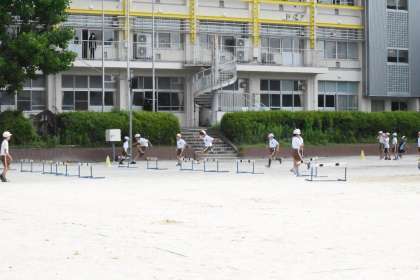 ハードルは、リズムよく、決まったスッテプで越えることが大切です。