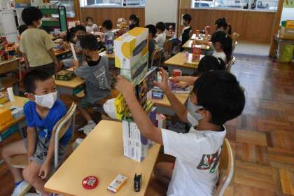 はこをつかって作品を作っていました。