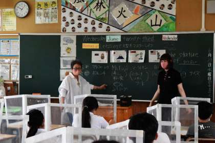 6年1組 外国語の学習です。 しっかりアウトプットして表現力の定着を図ります。