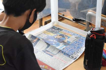 今日は、6年1組でスポーツ新聞は配られ、子どもたちは熱心にスポーツ新聞に目を通していました。