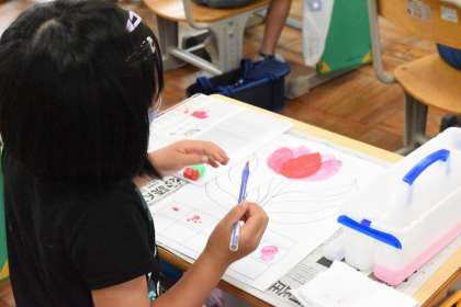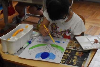 絵の具を水でといて塗るという作業です。