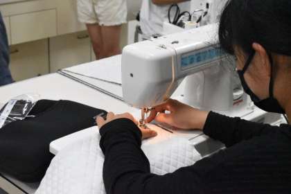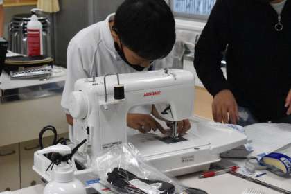 家庭科室が使えるようになり、ナップザックづくりに取り組んでいました。