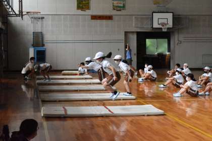 体育館は、それほどでもないので、6年生が体育の授業を行っていました。