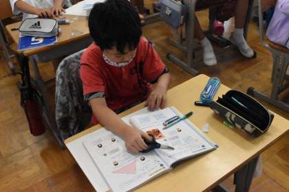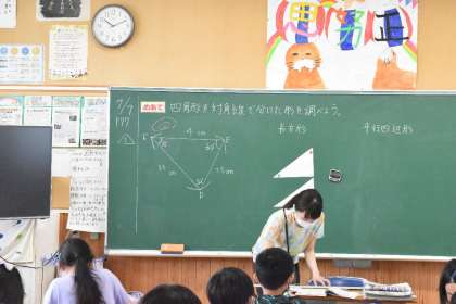 実際に色紙を切りながら、図形の性質を確かめていきます。