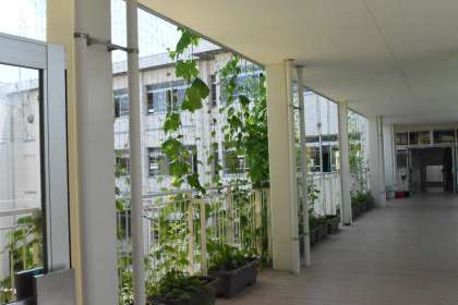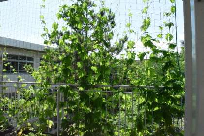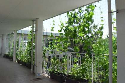 4年生が育てているグリーンカーテンが、どんどん育っています。