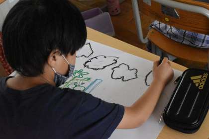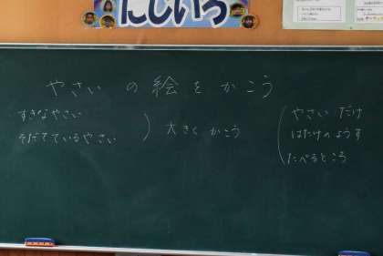 2年1組 図工 野菜の絵を描いていました。 ダイナミックな作品がいいですね。