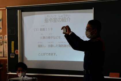 消防署の主な働きに加え、スマホなどを活用した新しい通報の方法を教えていただきました。