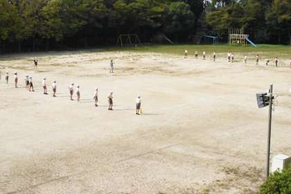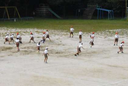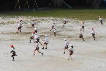 運動場でしっぽとりに取り組んでいました。