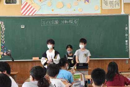 夏休みに、豊田市子ども会議に参加した子たちが、活動報告をしてくれました。