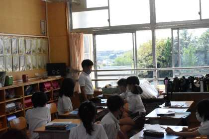 校庭で見つけた昆虫についてみんで話し合っていました。