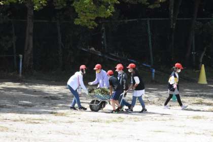 運動会に向けてのグランド整備を行っています。