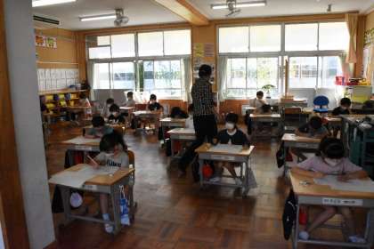 静かにテストに取り組んでいました。