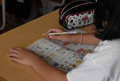 デジタル教科書の音声を聞いて、聞き取って答えます。