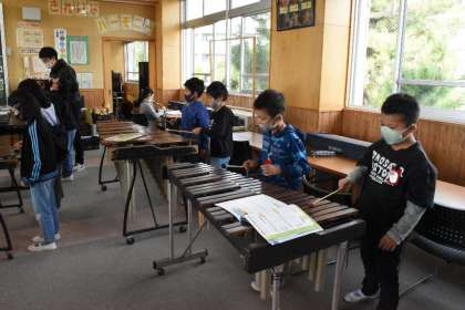 3年2組 音楽 合奏の練習をしていました。 リズムを合わせることがなかなか難しいですね。