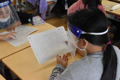 今日は、班で友だちの作品を聞いて、感想を書きます。