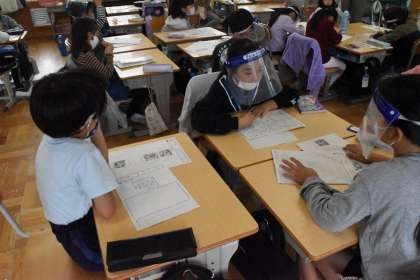 「絵を見てお話を書こう」の学習です。