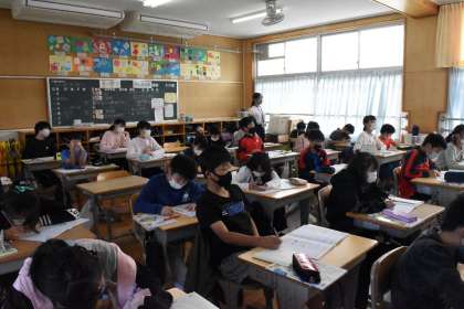 5年2組 家庭科 前回の調理実験の振り返りをしていました。
