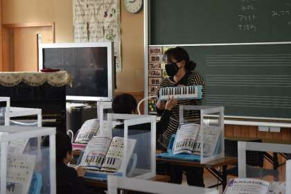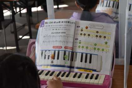 1年1組 音楽 鍵盤ハーモニカの練習です。 とても熱心に取り組んでいました。