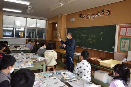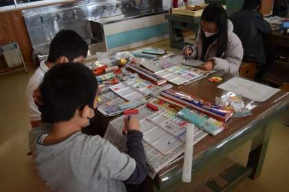 先生の話をしっかり聞いています。